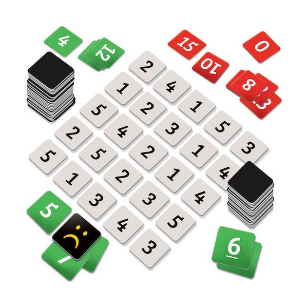 25 κάρτες αριθμών - 23 πράσινες κάρτες-στόχοι - 23 κόκκινες κάρτες-στόχοι - 1 κάρτα λάθους - Οδηγίες