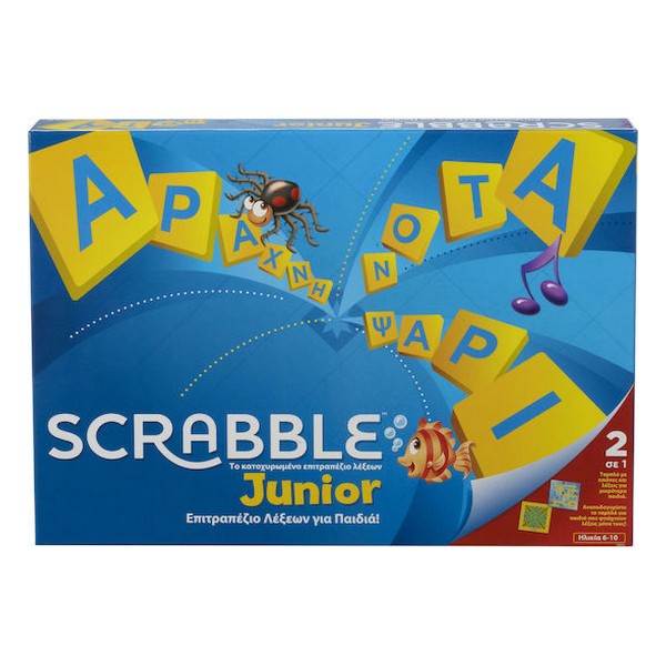 Ένας υπέροχος τρόπος για να παίζουν τα παιδιά το αγαπημένο παιχνίδι λέξεων! Στο Junior Scrabble™ τα παιδιά διασκεδάζουν ταιριάζοντας τα γράμματά τους στις λέξεις που είναι πάνω στο ταμπλό. Οι παίκτες κερδίζουν βαθμούς ολοκληρώνοντας λέξεις. Όταν όλα τα πλακίδια έχουν τοποθετηθεί στο ταμπλό, κερδίζει ο παίκτης με τις περισσότερες μάρκες! Αναποδογυρίστε το ταμπλό για να παίξουν παιδιά μεγαλύτερης ηλικίας και να δημιουργήσουν τις δικές τους λέξεις! Περιλαμβάνει ταμπλό παιχνιδιού 2 όψεων, 101 γράμματα, 44 μάρκες και οδηγίες για αρχάριους και προχωρημένους παίκτες.